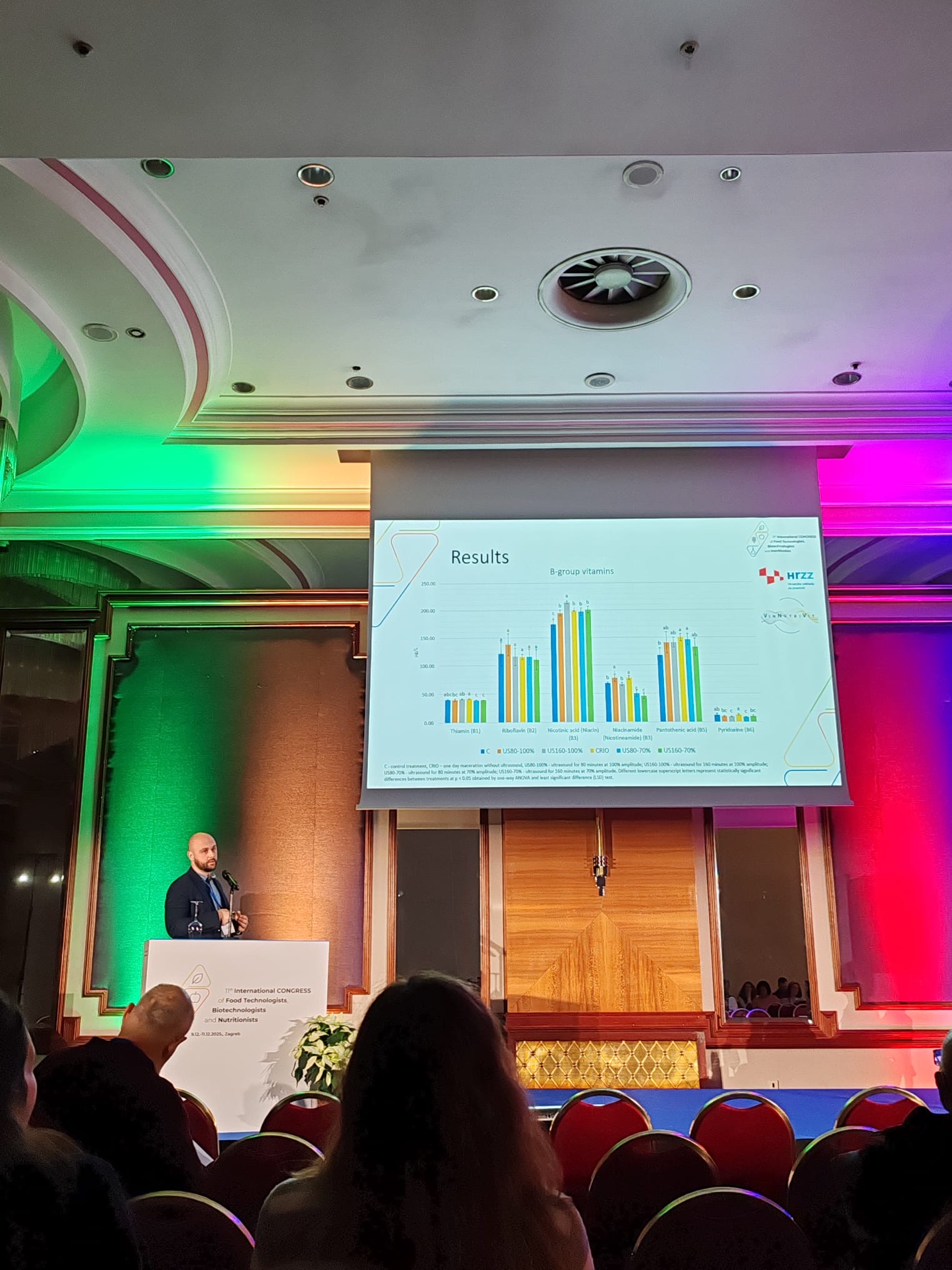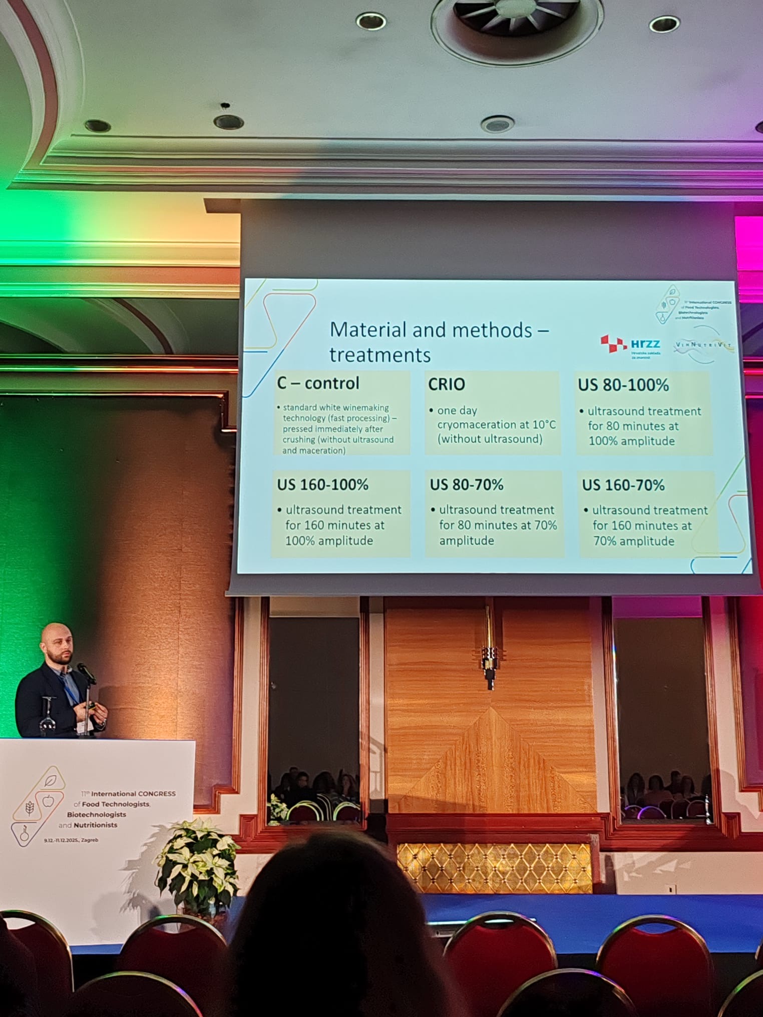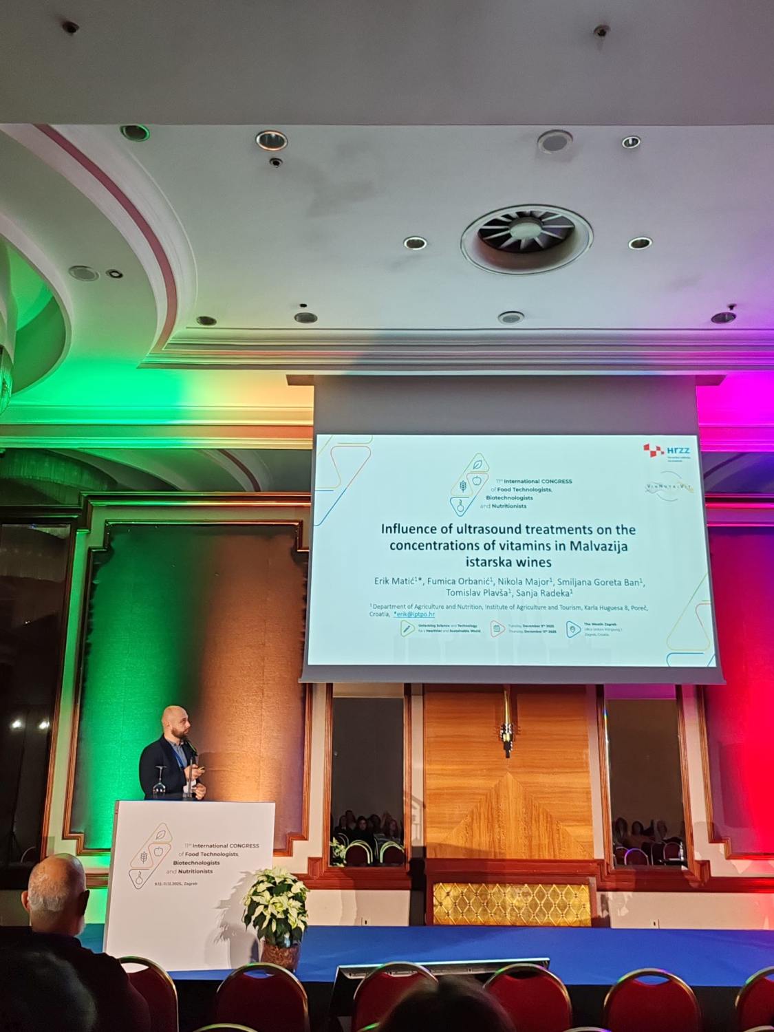 Na 11. Međunarodnom kongresu prehrambenih tehnologa, biotehnologa i nutricionista, održanom od 9. do 11. prosinca 2025. u hotelu Westin u Zagrebu, održana je prezentacija u sklopu HRZZ projekta „Inovativni vinifikacijski postupci u funkciji povećanja biološkog i nutritivnog potencijala vina i nusproizvoda vinifikacije autohtonih i introduciranih sorti vinove loze – VinNutriVit” (IP-2022-10-9128).